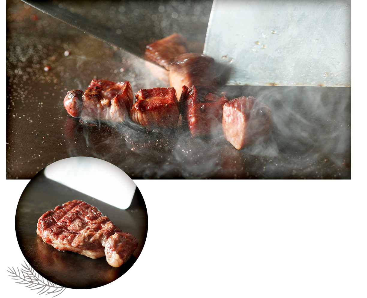 鉄板上で魅せる臨場感あふれる職人の技もお楽しみくださいませ。